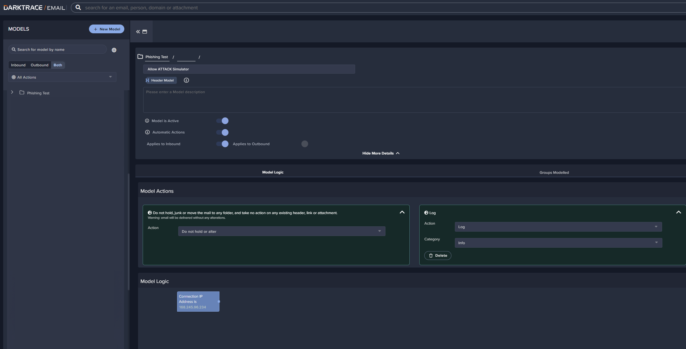 Si estás utilizando Darktrace para la seguridad del correo electrónico, querrás asegurarte de que los correos electrónicos de simulación de phishing de ATTACK Simulator lleguen con éxito a las bandejas de entrada de tus usuarios, sin ser bloqueados ni marcados como amenazas. Para garantizar una entrega sin problemas, se recomienda agregar la dirección IP del servidor de correo y los encabezados de ATTACK Simulator a la lista de permitidos (allowlist) en VIPRE.